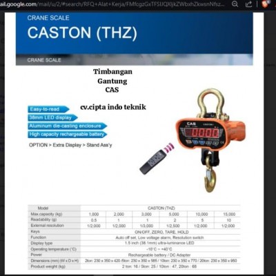 TIMBANGAN GANTUNG 2 TON CASTON THZ MERK CAS